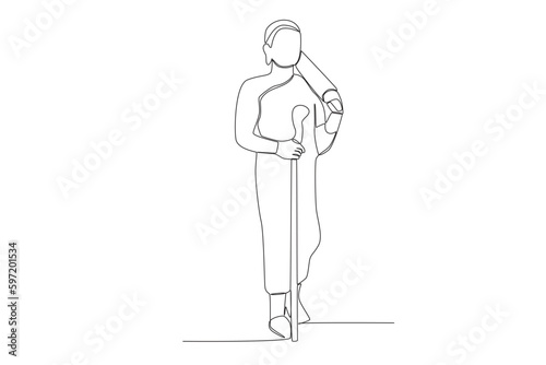 A monk holding a wooden staff. Monk one-line drawing