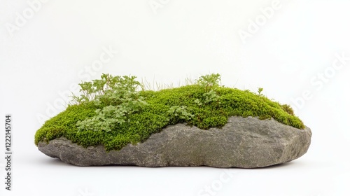 A moss-covered rock with small plants, showcasing nature's beauty and tranquility.