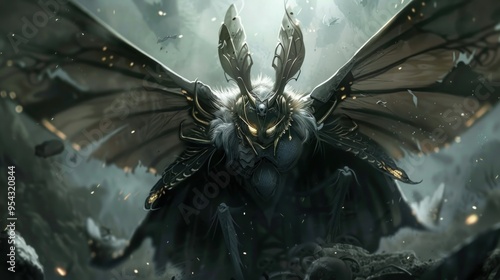 A moth knight with a complex biomechanical sinister design. AI generated images