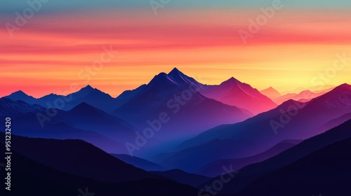 A mountain range silhouetted against a colorful sunset, providing a striking background with ample space for text.