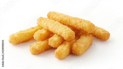 A multitude of golden tater sticks arranged neatly on a clean white surface, showcasing their crispy texture and appealing shape.