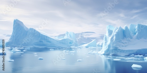 A Multitude of Icebergs in Calm Blue Arctic or Antarctic Waters: A Serene Glimpse of Silence Amidst
