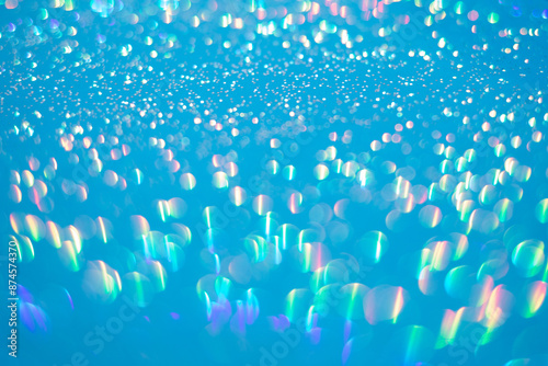 A multitude of small, defocused light points creating a bokeh effect on a gradient background. Bokeh lights in hues of blue, purple, pink, green