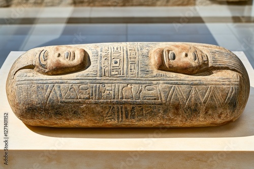 A museum exhibition showcasing a historical artifact inside a glass display case