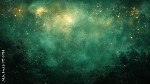 A muted green background featuring abstract star patterns scattered across and an open central section