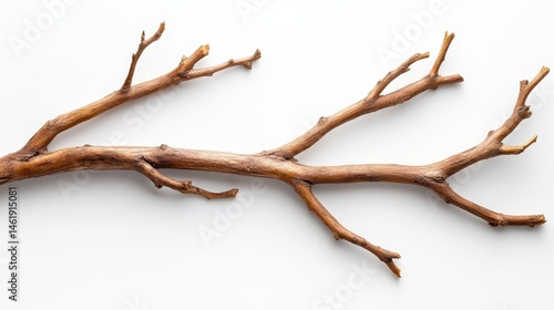 A natural branch displaying twigs in a freeform arrangement, emphasizing organic shapes against a light background, perfect for nature-inspired designs and visuals.