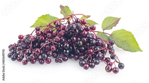 A natural composition of berries and leaves on a white background, suitable for various uses such as design, marketing, or education