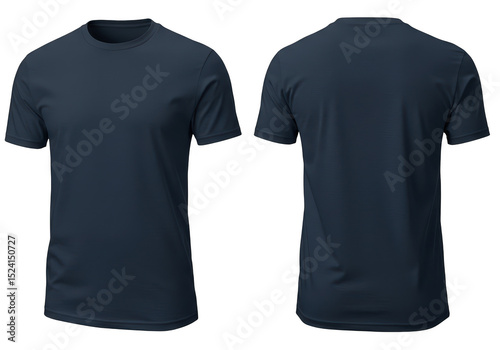 A navy blue tshirt is shown from the front and back, isolated on transparent background
