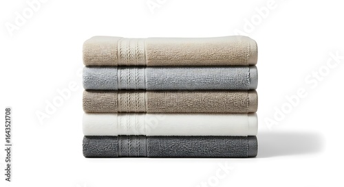 A neat stack of soft, quick-drying cotton towels in neutral colors