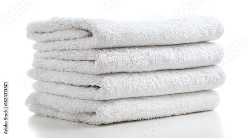 A neatly folded stack of soft, fluffy white towels. The texture is cozy and inviting.