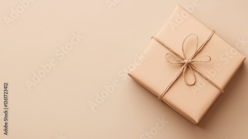 A neatly wrapped gift box with a simple bow sits on a light beige surface, creating an elegant and minimalistic presentation, Eco-Friendly Packaging cup.
