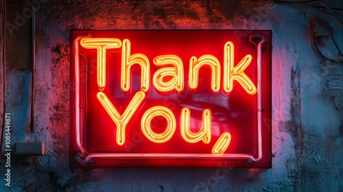 A neon sign saying "Thank You" on a dark, industrial wall.