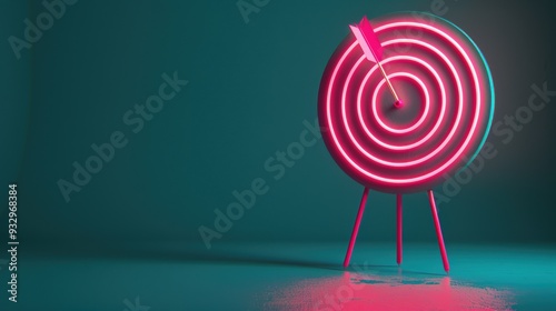 A neon target symbol glowing in a dark, minimalist setting, with ample copy space for adding text or graphics. The image conveys a sense of precision and focus, perfect for illustrating concepts