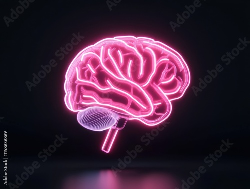 A neon-lit, high-tech representation of a human brain floats against a dark background, highlighting futuristic and digital themes.