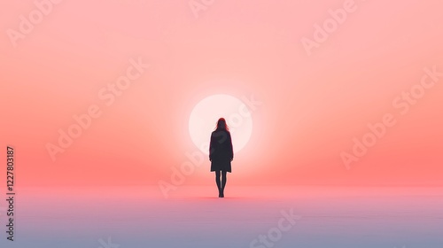 A New Chapter, a woman's silhouette steps forward into a vibrant sunrise, embodying hope and the promise of new beginnings in an open landscape.