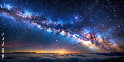 A Night Sky Tapestry of Stars and Nebulas Above Silhouetted Mountains and a Sea of Clouds