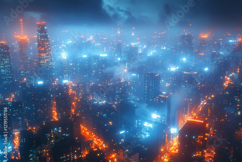 A Nighttime Cityscape Bathed In Vivid Neon Lights