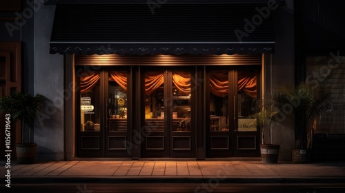 A Nighttime View of a Closed Storefront with Warm Lighting
