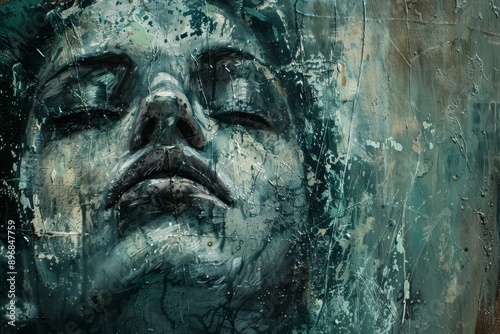 A painting depicting a woman with her eyes closed, Explore the gritty texture of noise in your art