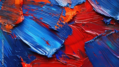 A painting of a blue and red brushstroke with a red and blue background. The painting is abstract and has a lot of texture