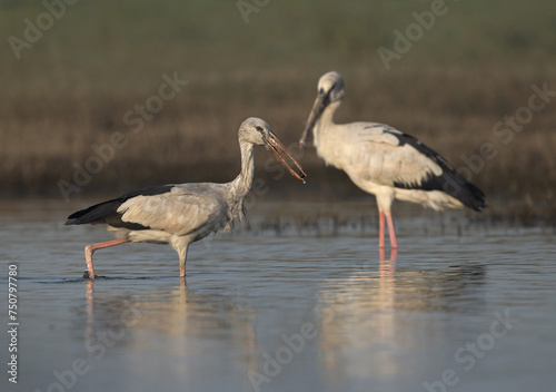 A pair of Asian openbill stork at Bhigwan bird sanctuary, India