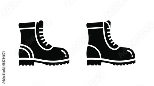 A pair of black combat boots depicted in a simple stylized vector illustration