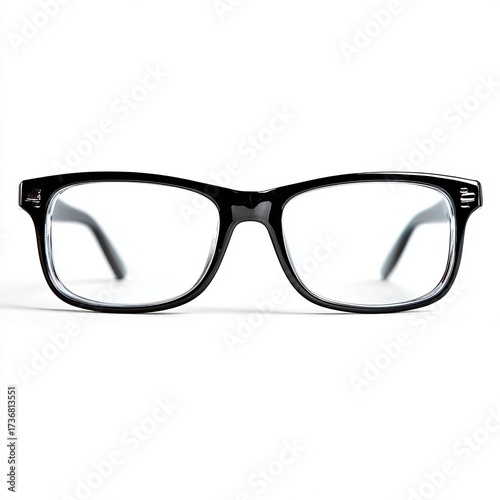 A pair of black-rimmed eyeglasses, presented in a clear, detailed view. The eyeglasses showcase a sleek design and focus on visual clarity.