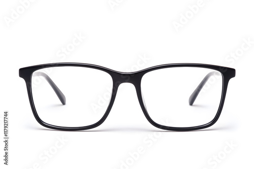 A pair of classic, black-rimmed eyeglasses isolated on white background