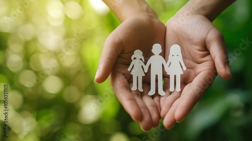A pair of hands hold a paper cutout family, symbolizing protection and care.