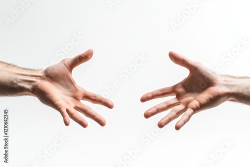 A pair of male hands shown in a grabbing or reaching position, isolated against a white background
