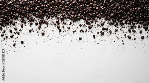 A panoramic border of coffee beans, isolated on a white background with space for text.