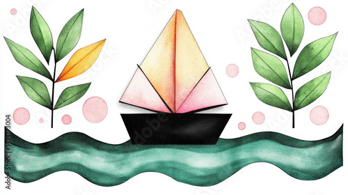 A Paper Boat Sailing on a Peaceful River Life Goes On Illustration Tranquil Setting Artistic View