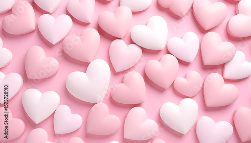 A pastel heart-shaped pattern. Pink and white hearts on a pink background