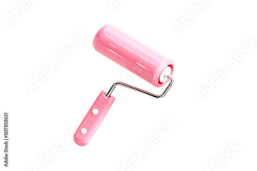 A Pastel Pink Paint Roller for Creative and Smooth Application Isolated on transparent background, cutout