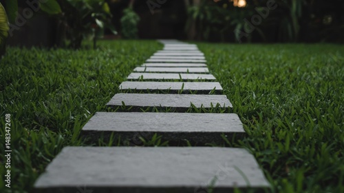 A pathway of gray stones leads to a dark background.