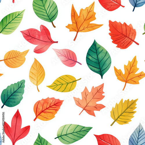 a pattern of colorful watercolor fall leaves