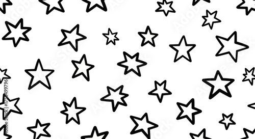A pattern of hand-drawn stars in various sizes scattered across a white background.