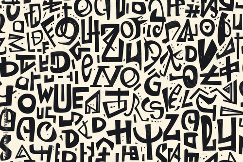 A pattern of letters with fonts, sizes, and words