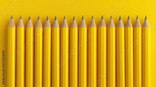 A pattern of perfectly aligned, brand new yellow pencils on a yellow background, monochromatic, minimalist and graphic.