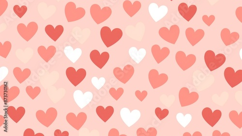 A pattern of pink, red, and white hearts on a light pink background