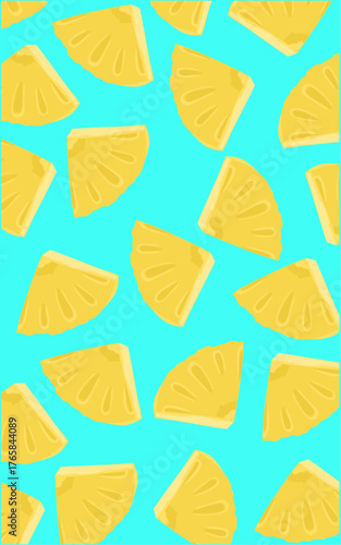 a pattern of slices of triangle yellow pineapple fruit on a blue background