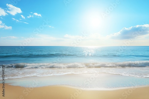 A peaceful afternoon at the beach under a clear sky with gentle waves lapping the shore, perfect for relaxation and enjoyment