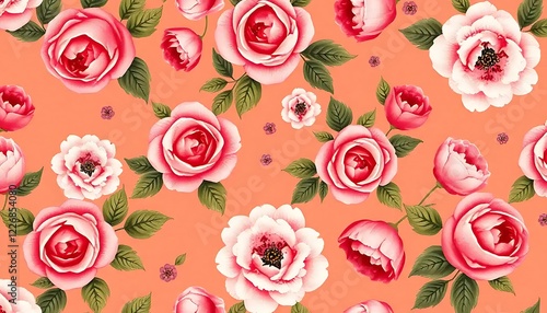 A Peach Background Featuring Pink Roses and Smaller Flowers