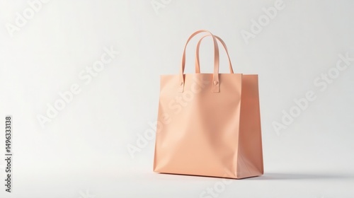 A peach-colored shopping bag with sturdy handles, ideal for carrying everyday essentials or shopping purchases, stands elegantly on a minimalist white background.