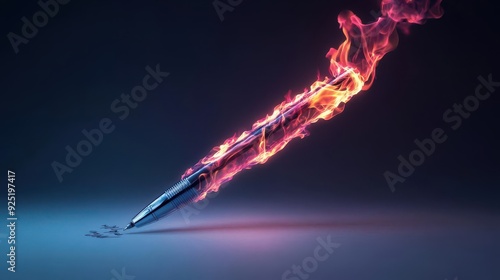 A pen made entirely of flames writing on air, Fantasy, Bright hues, Light effects, Ethereal atmosphere