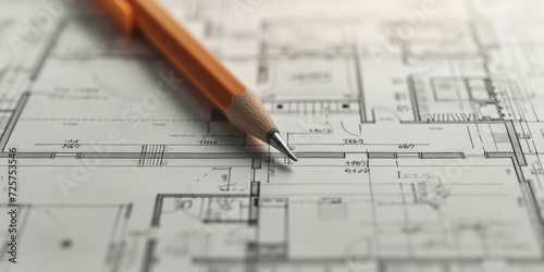 A pencil sitting on top of a blueprint. Suitable for architectural design, engineering projects, or creative concepts
