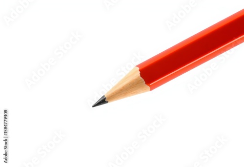 A perfectly sharpened pencil, point facing up, isolated on a pure white background, graphic, wood