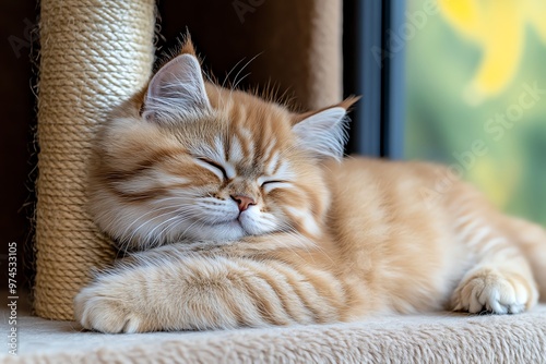 A Persian cat curled up in a cozy corner, purring softly while its plush fur blankets it in warmth
