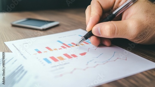 A Person Analyzing a Bar Graph and Line Graph with a Pen