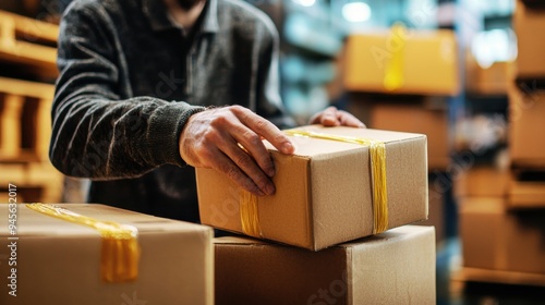 A person carefully placing a package in a warehouse, showcasing the importance of organization and logistics in shipping.